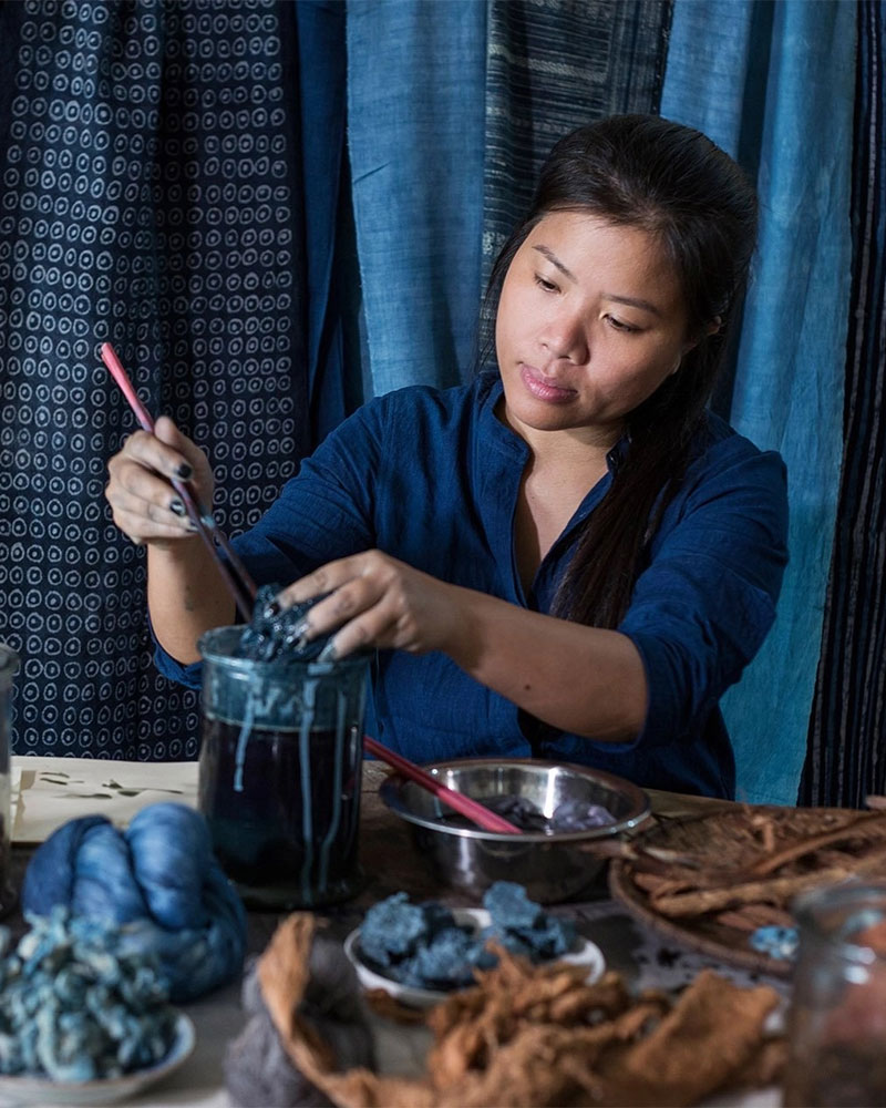 Thao makes the pilgrimage to Cao Bằng every few months, where she helps plant indigo, experiment with dyes, and develop new weaving techniques with the Nùng women.
